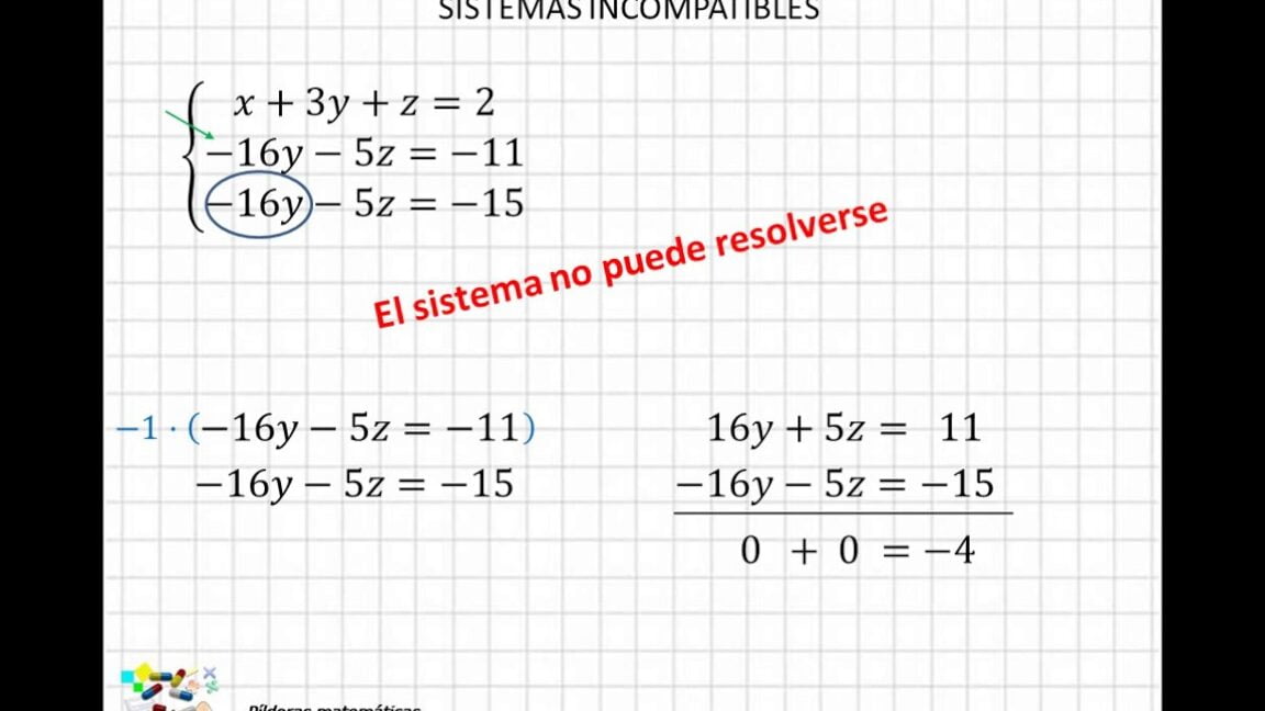 Un sistema de ecuaciones incompatible es aquel en el cual no existe ninguna solución que satisfaga simultáneamente todas las ecuaciones del sistema. Esto ocurre cuando las ecuaciones son contradictorias entre sí y no es posible encontrar un punto que las cumpla a todas. Para determinar la incompatibilidad, se pueden utilizar métodos como la eliminación, la sustitución o la reducción. Es importante recordar que un sistema incompatible no tiene solución y representa una situación en la cual las ecuaciones son inconsistentes.